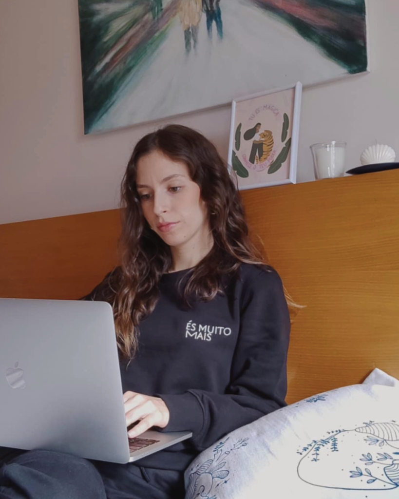 Desde o início que decidi que o meu percurso não passaria pelo emprego mais comum e não me imaginava fechada num escritório o dia todo. Então, passei rapidamente à ação para construir o meu próprio trabalho como designer & ilustradora. Através da identidade visual que criei para a minha marca pessoal como ilustradora, comecei a receber pedidos para auxiliar outras marcas na sua identidade e rapidamente recebi propostas para terem as ilustrações que crio nas suas lojas. Criei conexão, mostrei quem sou e identificaram-se com a minha comunicação.